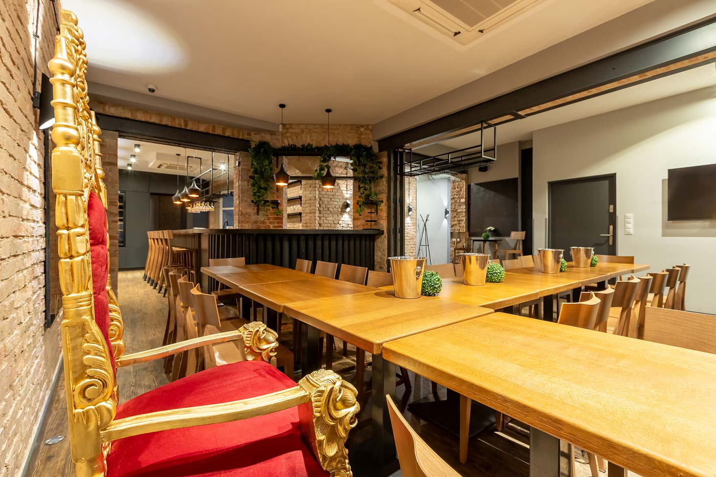 Apartament Za Bramką 12 – Prestige I to ogromna porcja prestiżu, wyjątkowości oraz ekskluzywności. Apartament znajdujący się na parterze może pomieścić 30 osób bez możliwości noclegu. W lokalu znajduje się ogromny bar, część jadalna, duży dancefloor, stoły na 30 osób wraz z dużym tronem, wyposażona kuchnia oraz toaleta. Na miejscu znajduje się 65 calowy Smart TV oraz nagłośnienie. Ekskluzywny wystrój sprawi, że Twoje wydarzenie będzie zapamiętane i oszałamiające.